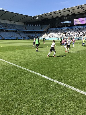 Den 28/5 åkte vi i vårt lag tillsammans med tjejerna till MFF där vi skulle förmatch och vara maskotar.